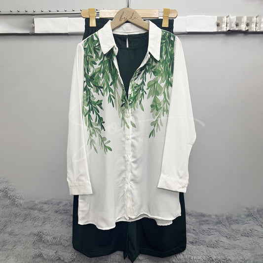 Leaf Print White Blouse â Casual Long Sleeves