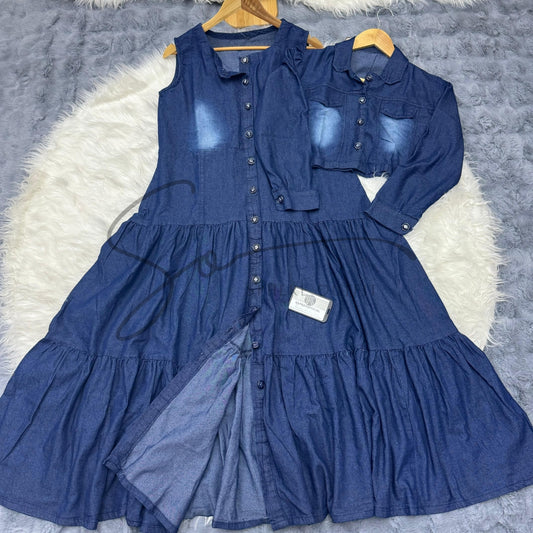 Denim Two-Piece Frock and Coat Set