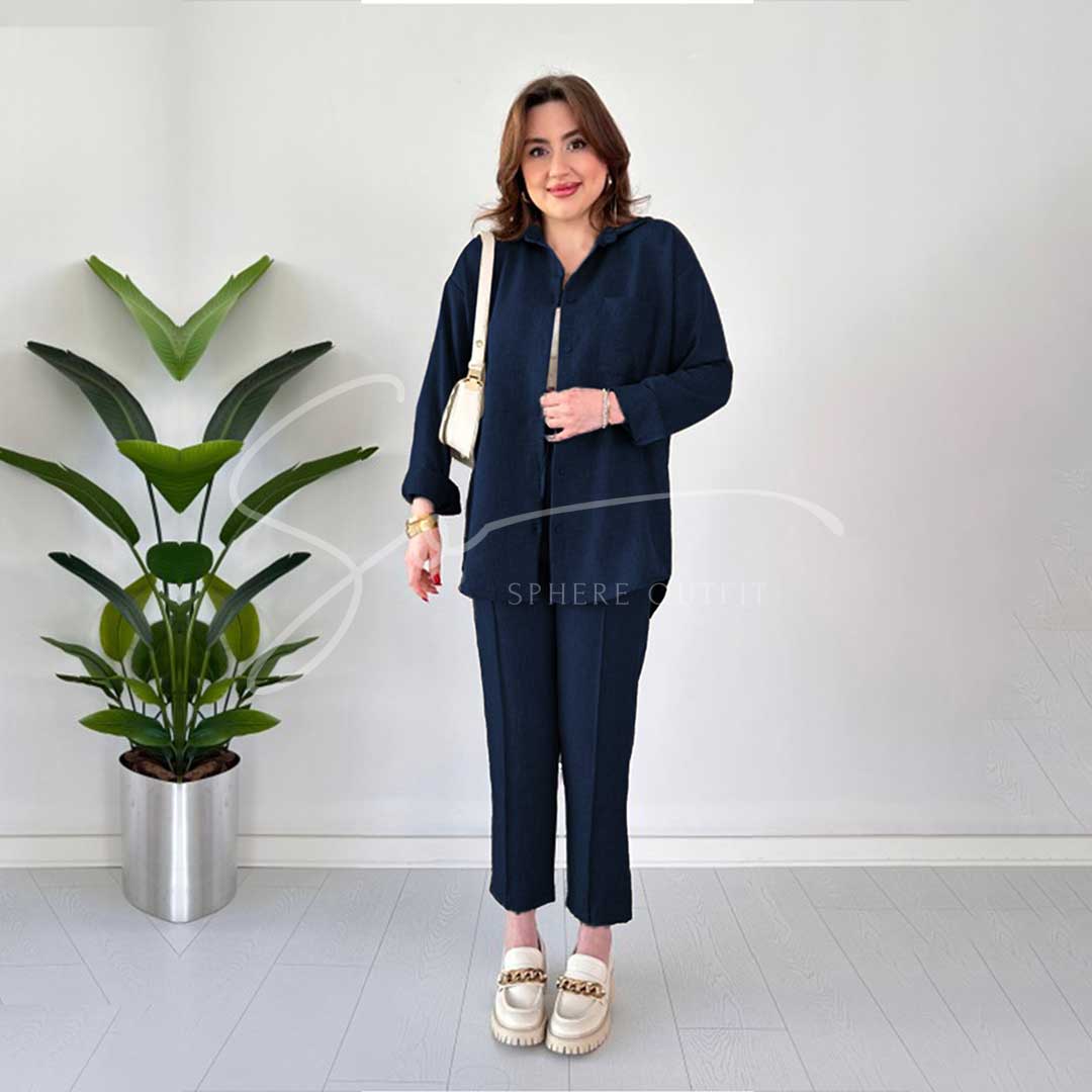 Perfect for a casual day out or semi-formal gatherings, this versatile set offers a refined yet relaxed style.