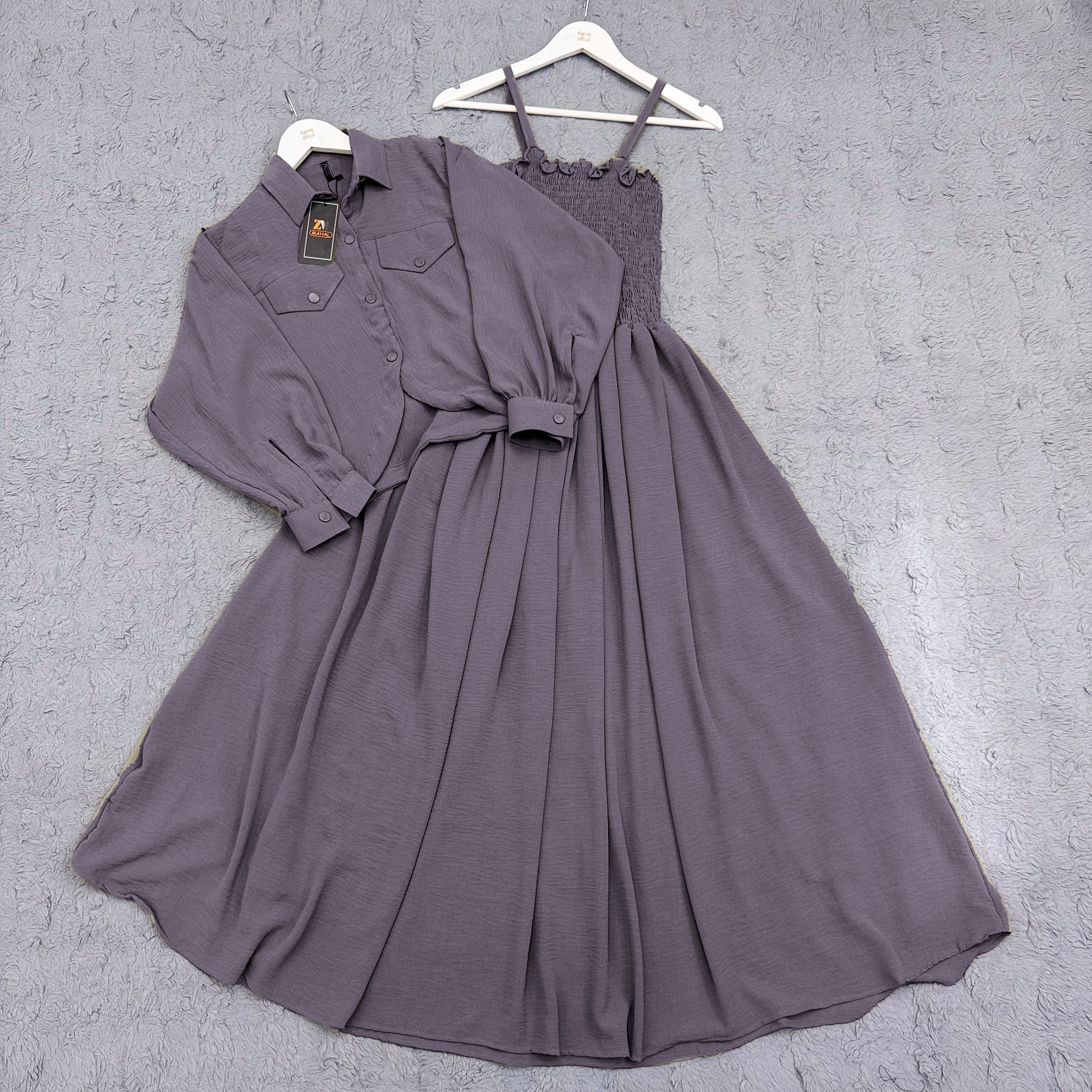 Unveil Effortless Elegance with Our 2-Piece Smocked Maxi Dress & Collared Jacket Set!