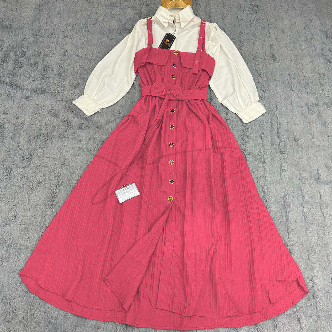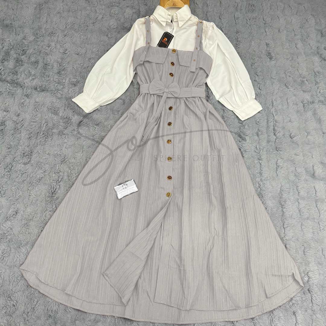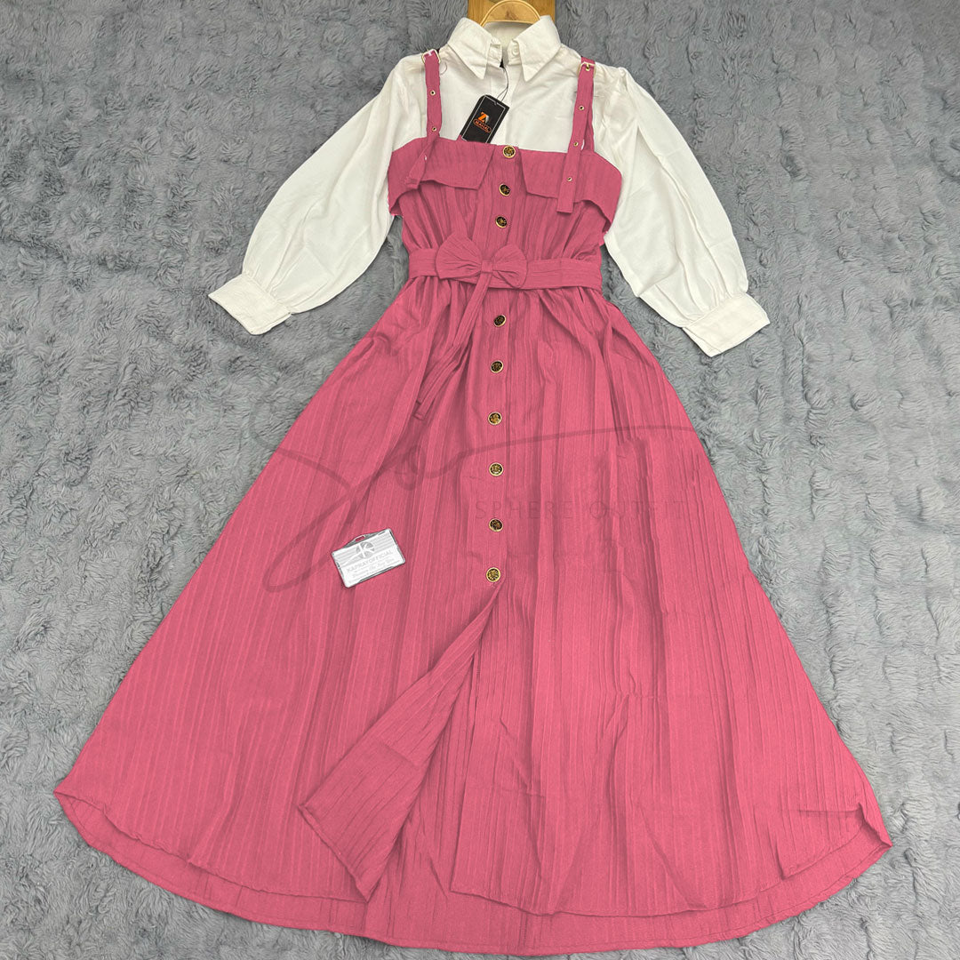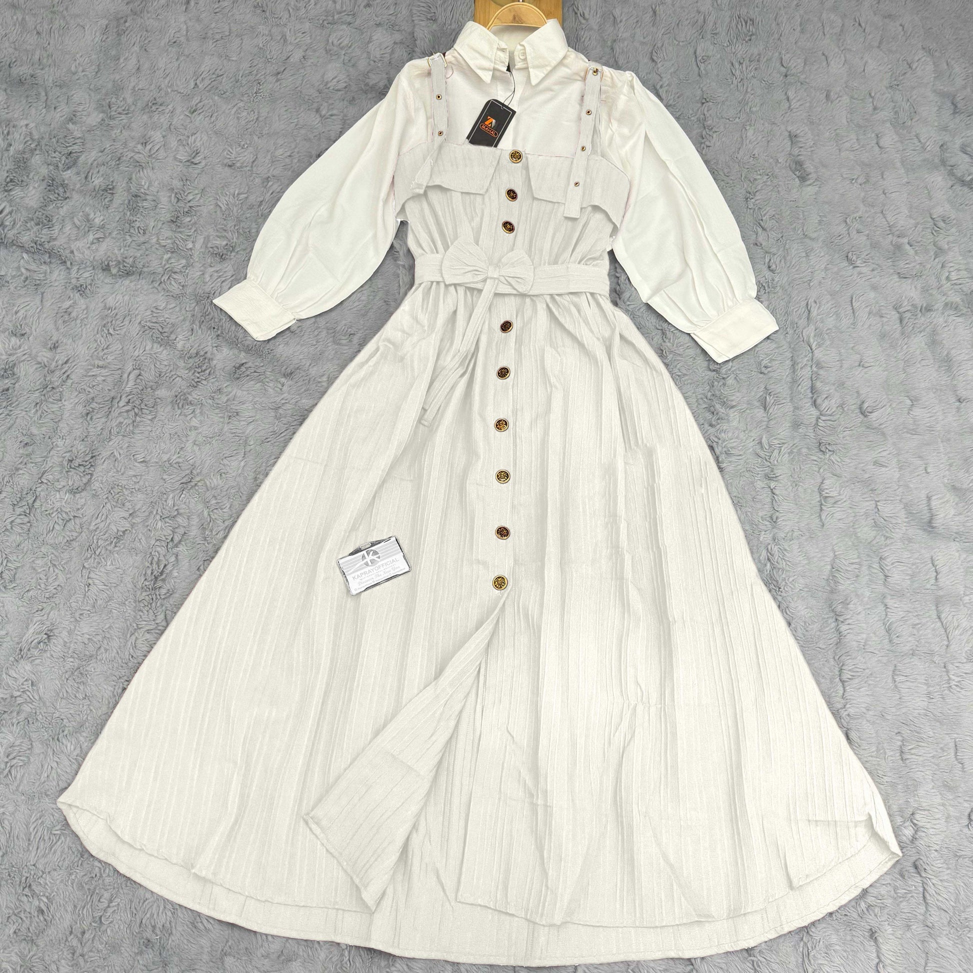 Elevate your wardrobe with our stunning SP-28 two-piece set, a perfect blend of elegance and contemporary style. This versatile ensemble features a classic white collared shirt paired with a beautifully designed pinstriped overall dress, creating a look that transitions effortlessly from casual outings to semi-formal occasions.