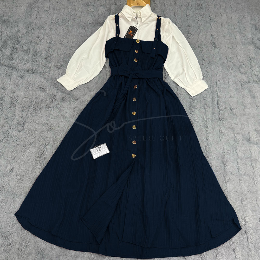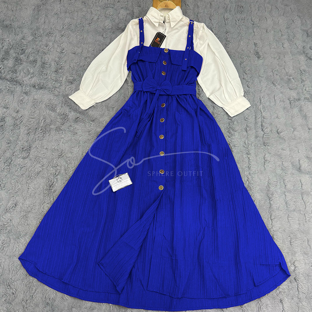 This versatile two-piece set offers the perfect balance between comfort and style. The separate white shirt can be paired with other bottoms in your wardrobe, while the overall dress can be styled with different tops for multiple looks. The premium fabric ensures durability while maintaining a lightweight feel, making it suitable for year-round wear. The adjustable straps allow for a customized fit, while the waist belt accentuates your figure beautifully.