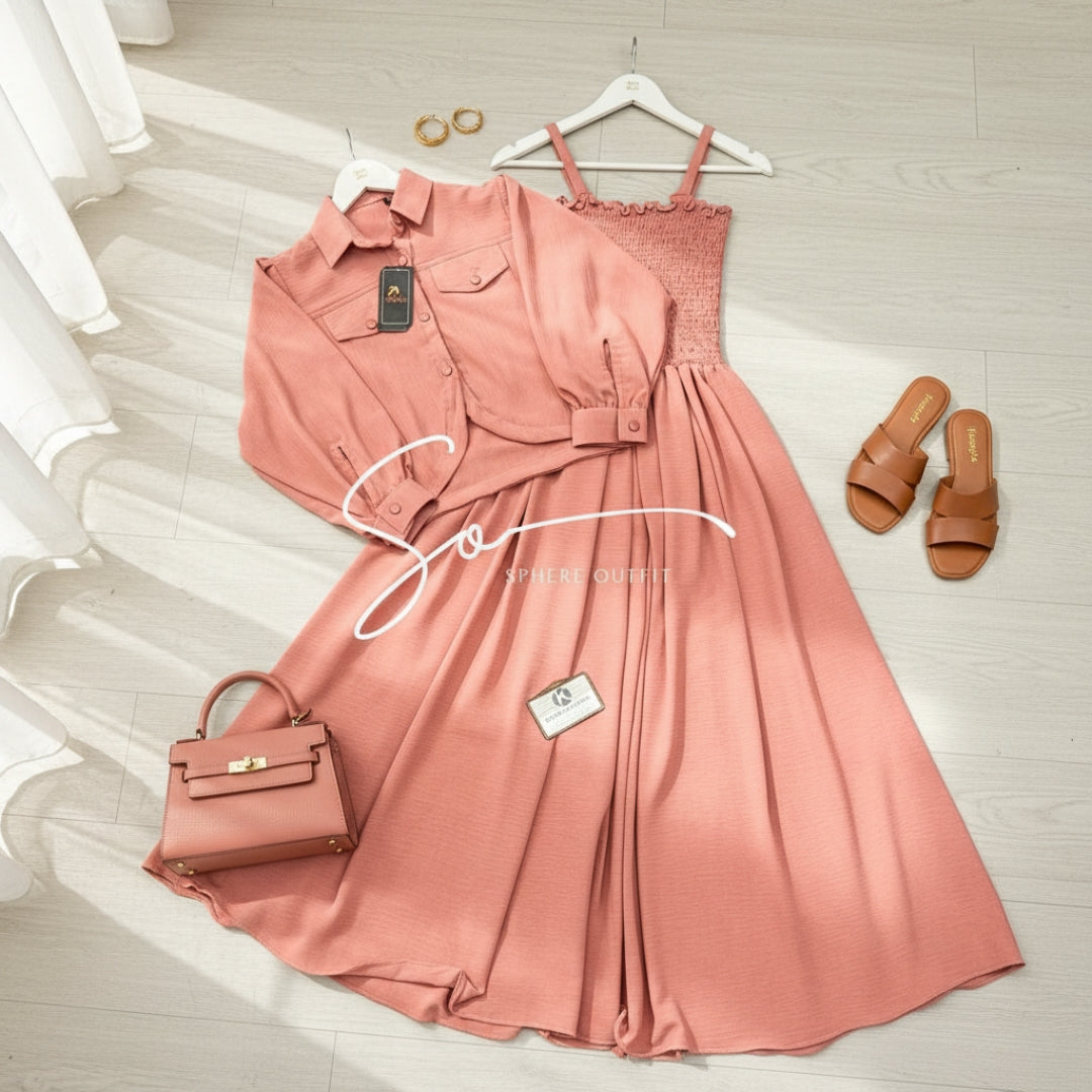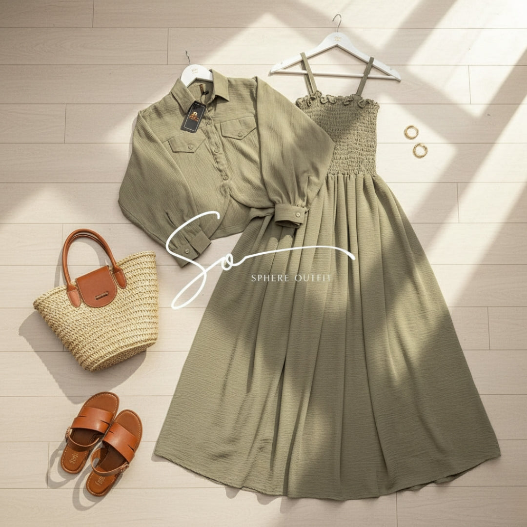 Elevate Your Wardrobe with Our Chic Smocked Maxi Dress & Cropped Collared Jacket Set!